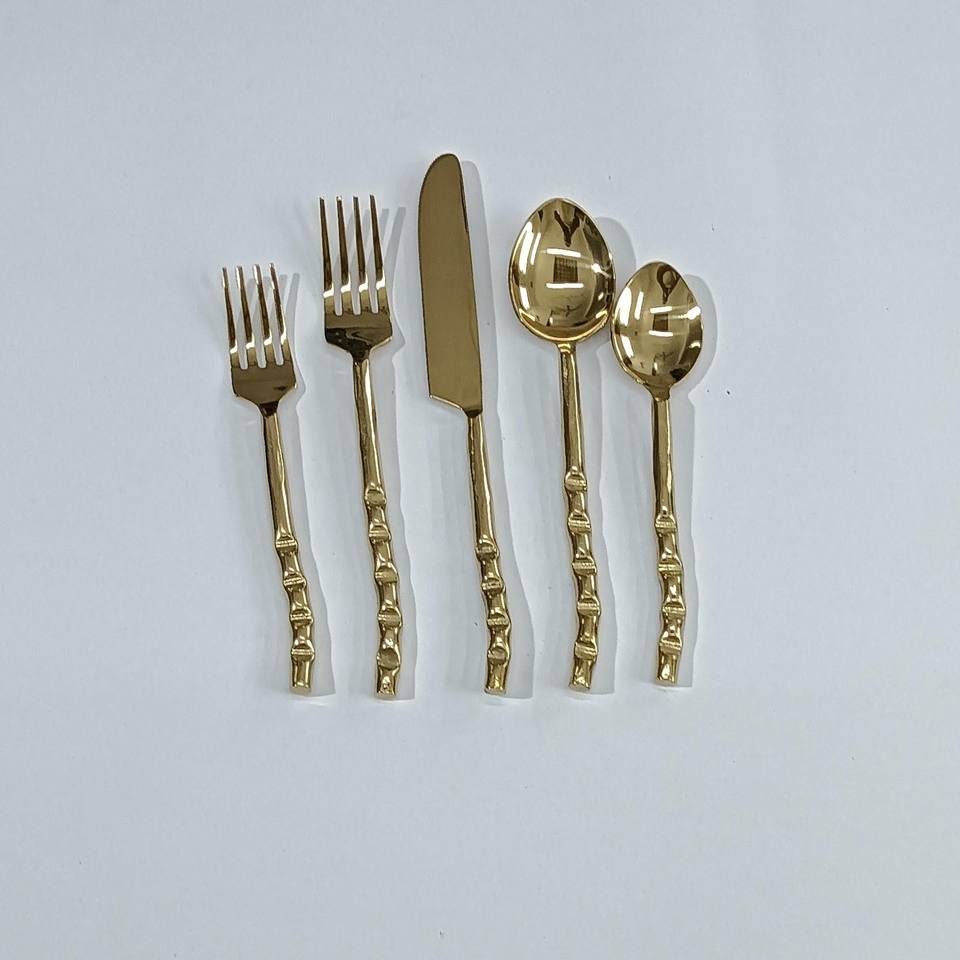 Juego de Cubiertos Personalizado de Acero Inoxidable con Diseño Forjado a Mano, con Recubrimiento PVD Dorado Creativo
