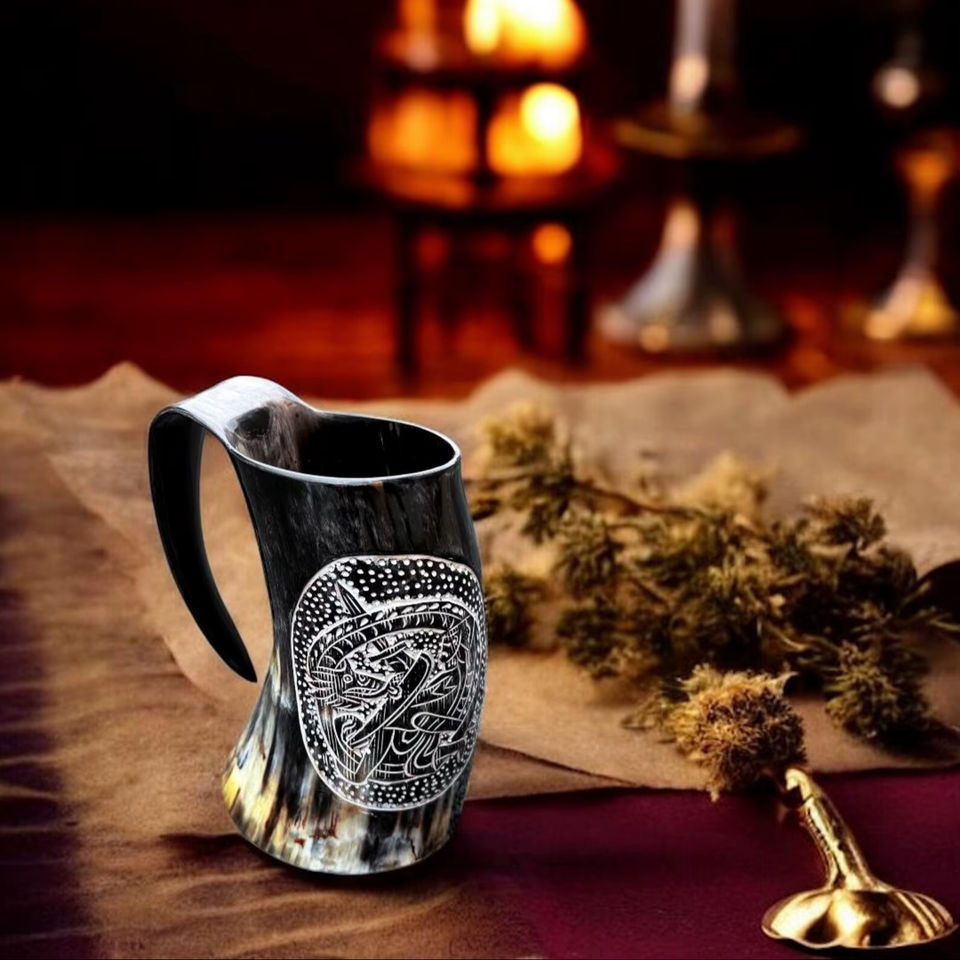 Taza vikinga de fuego forjada a mano tallada en cuerno Animal ecológico y de estilo para canciones de sagas y hidromiel fuerte