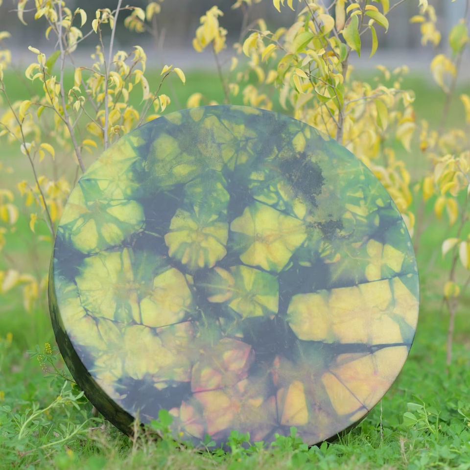 Tambor de Marco Hecho a Mano con Diseño del Árbol de la Vida, Tambor de Piel Teñida Ecológicamente para Meditación y Sanación con Sonido