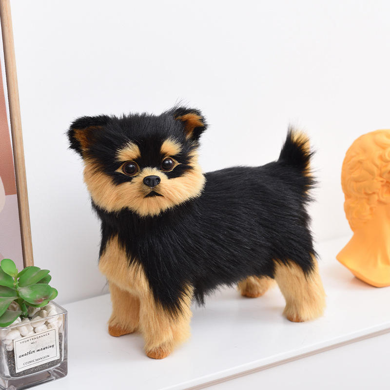 Perro de Peluche Yorkshire Terrier de Simulación de Piel Sintética Hecho a Mano, Juguetes Artesanales, Estatuas de Yorkshire de Tamaño Real para Exteriores, Hogar y Jardín