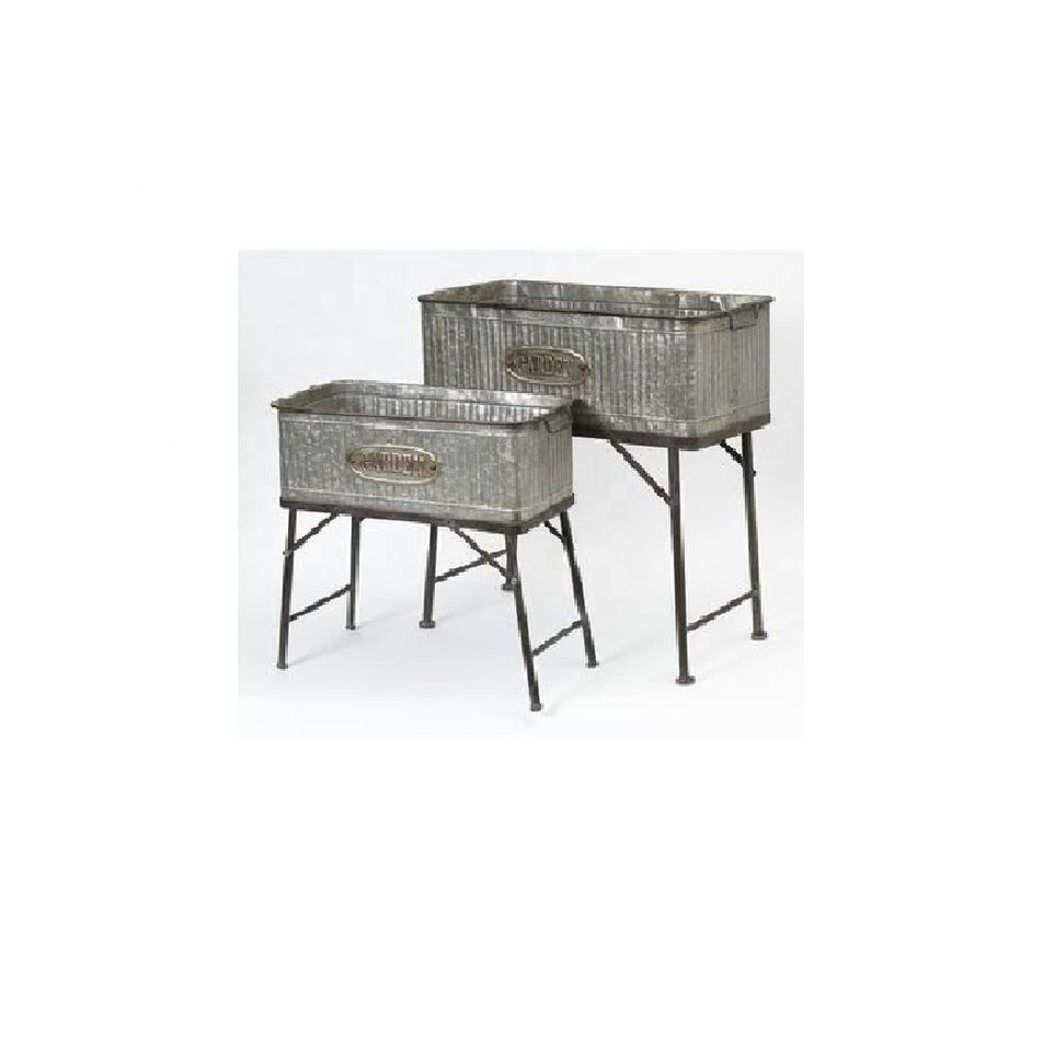 Juego de macetas grandes de metal galvanizado hecho a mano con soporte mayorista fabricante venta directa de fábrica