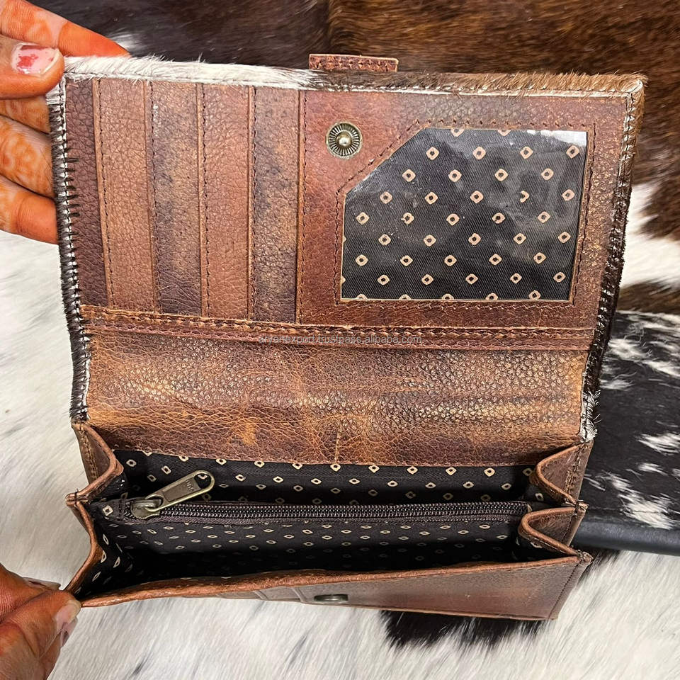 Carteras de Cuero Vacuno Genuino Hechas a Mano para Mujer, Cartera Delgada, Billetera Bifold, Cartera de Cuero de Alta Calidad, Estilo Occidental