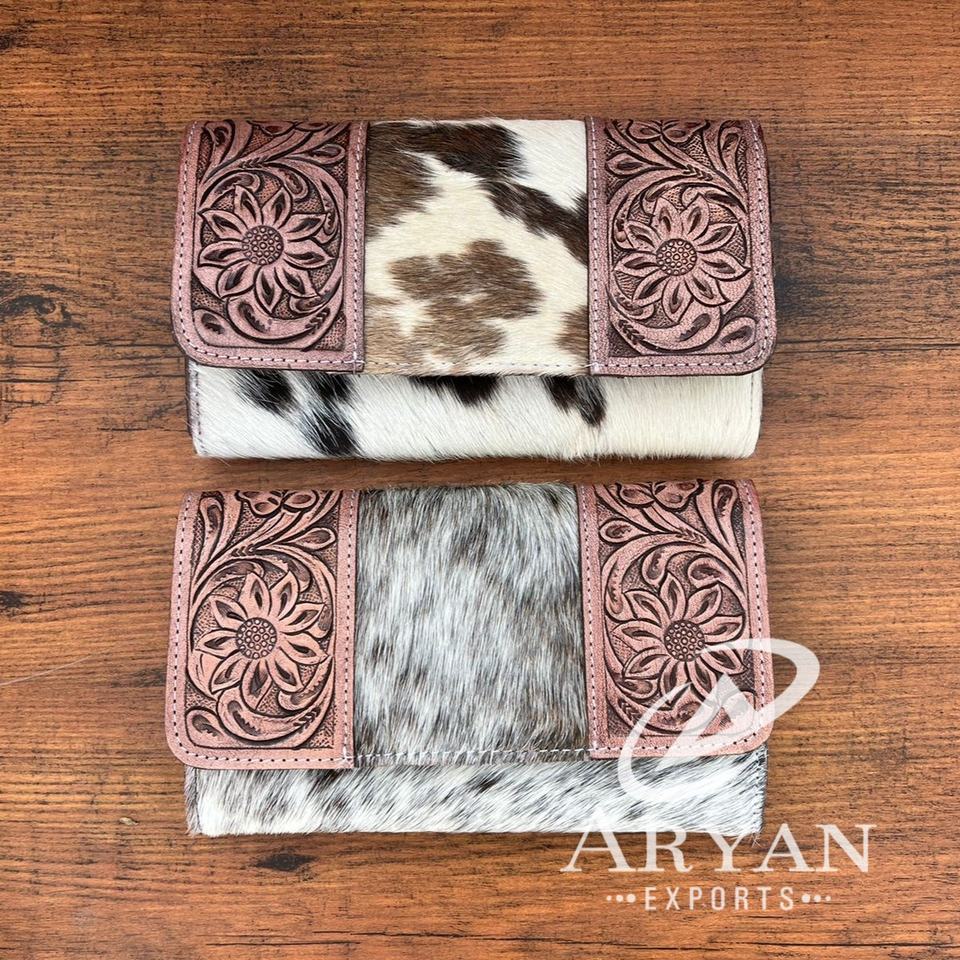 Cartera de piel de vaca auténtica hecha a mano, cartera occidental para tarjetas de crédito, cosida a mano, para mujer