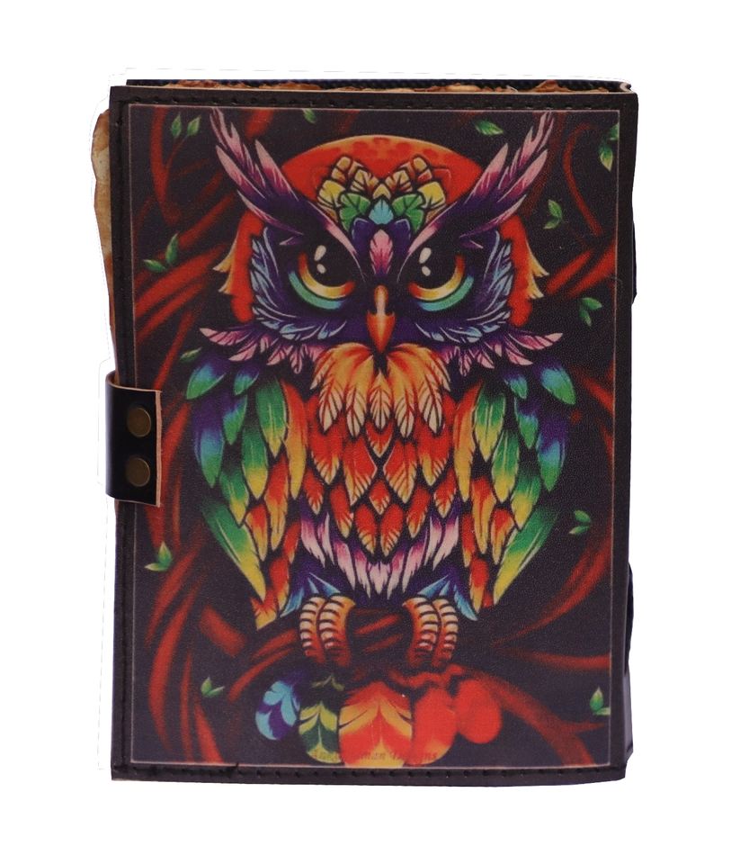 Cuaderno de piel con estampado de búhos
