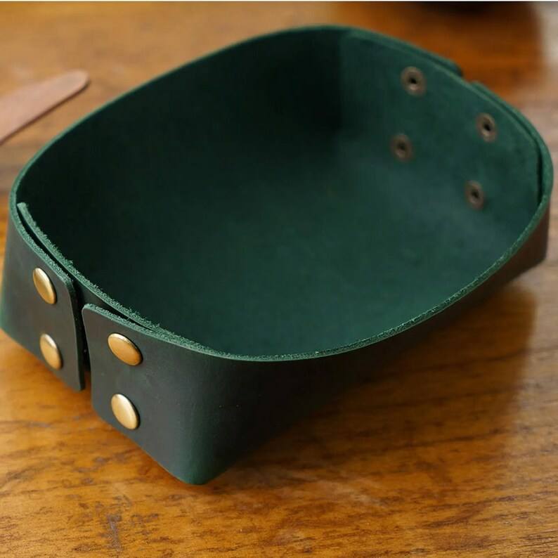 Bandeja de cuero genuino hecha a mano Valet Catchall caja de almacenamiento organizador para escritorio de joyería logotipo personalizado decorativo