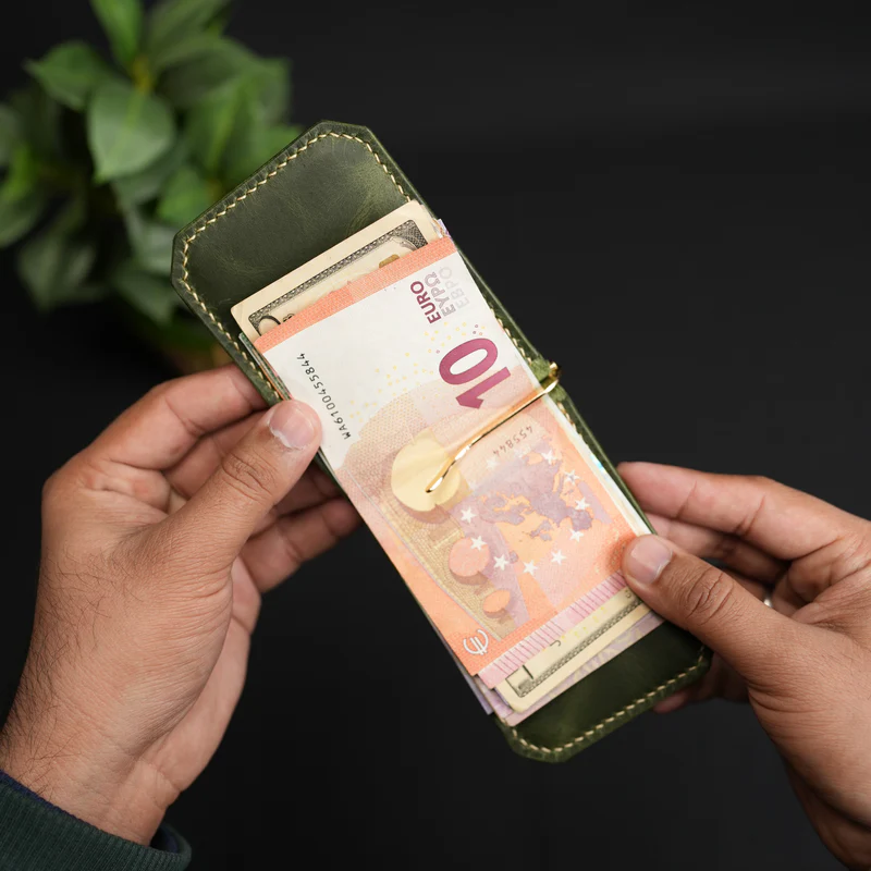 Cartera de Cuero Premium con Clip para Billetes, Hecha a Mano, Delgada, Resistente, Minimalista, Diseño de Viaje