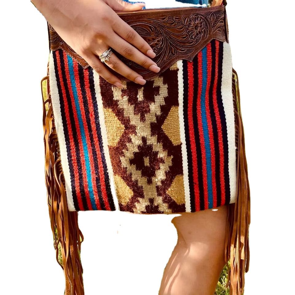 Woolen Saddle Blanket, Tooled Leather, Cow SuedeMaterial