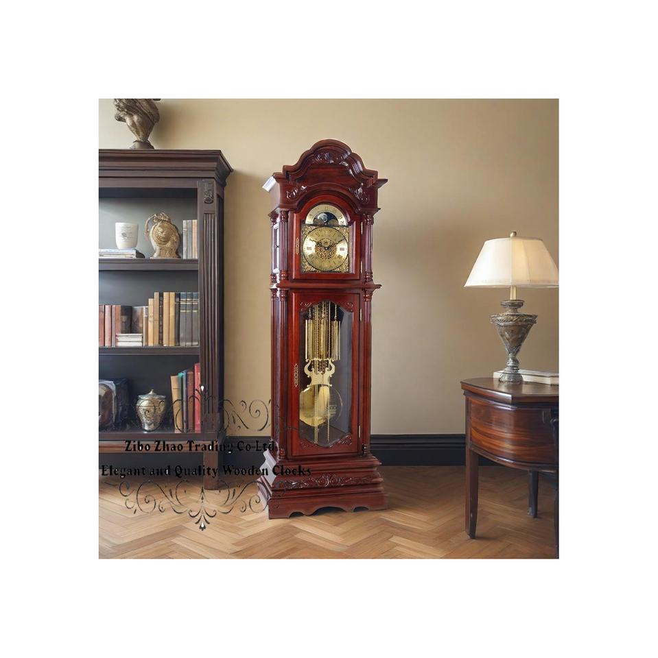 Reloj de Pie de Madera de Cerezo Macizo con Movimiento Alemán Hecho a Mano, Mecanismo Original de la Selva Negra con Tres Melodías