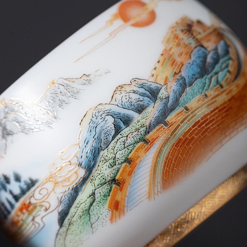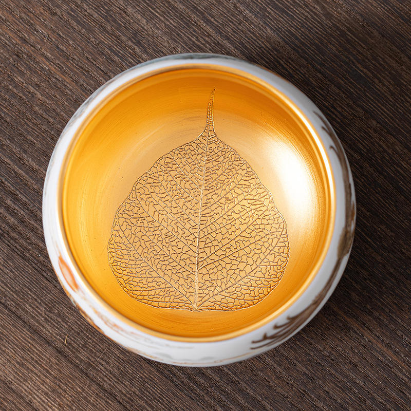 Juego de Té Kung Fu Grande Dorado Hecho a Mano, Estilo Chino, Taza de Cien Bendiciones con Sutra del Corazón