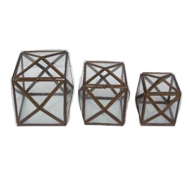 Caja de regalo organizadora de joyas de cristal hecha a mano, Juego de 3 piezas con lados triangulares y acabado de latón antiguo para mujer