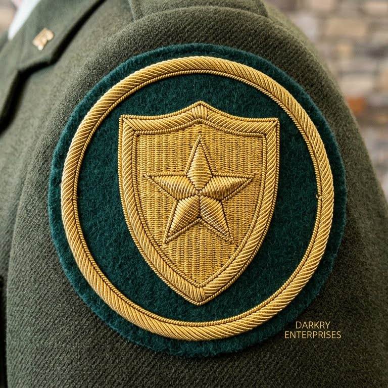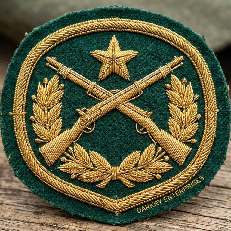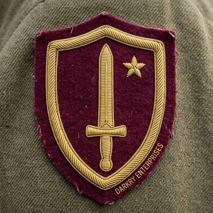 Parche Bordado a Mano con Hilo de Oro, Escudo y Espada, Insignia de Estrella en Fieltro Marrón, Servicio Personalizado para Uniformes y Blazers
