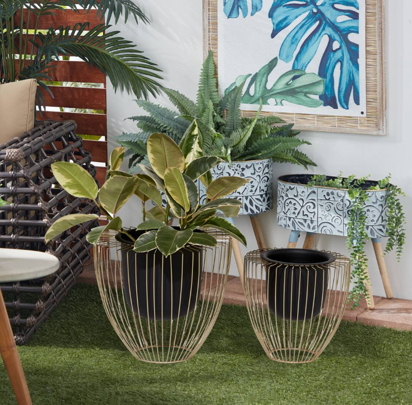 Macetero de Metal para Interiores y Exteriores, Hecho a Mano, con Recubrimiento de Polvo Dorado, Estilo Rústico, Superventas, Decoración para Hogar y Jardín
