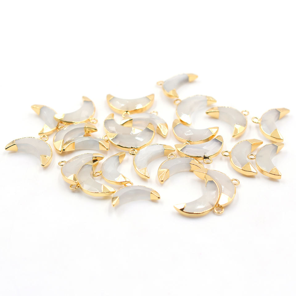 Colgante de Calcedonia y Latón con Forma de Luna, Bañado en Oro, Piedra Facetada Tallada para Bisutería con Argolla para Fabricación de Joyas
