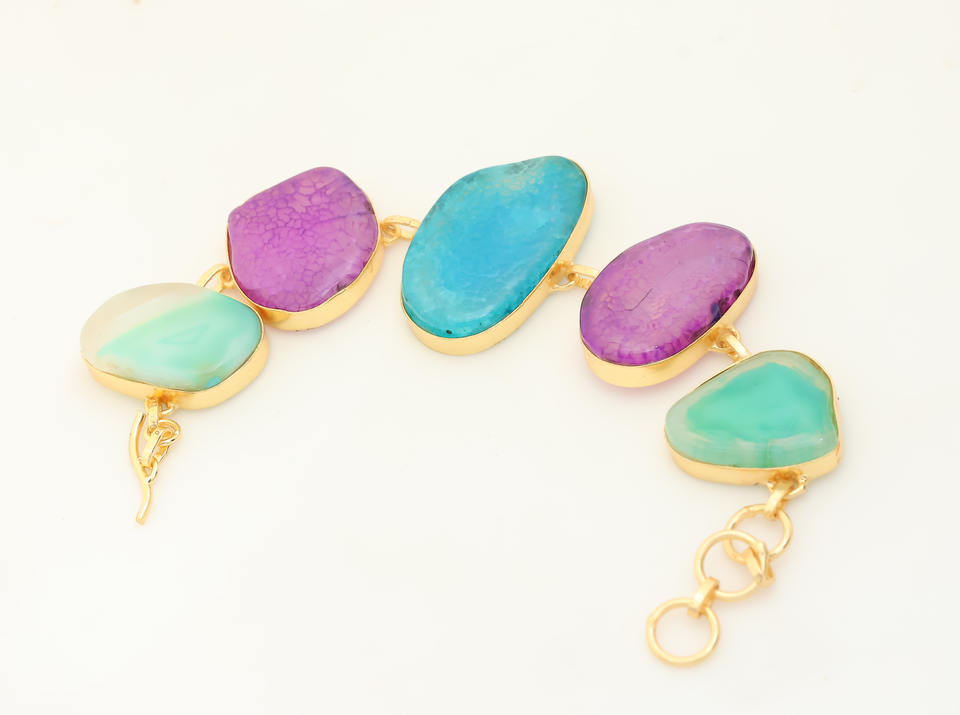 Pulsera de múltiples piedras preciosas chapada en oro hecha a mano, joyería de declaración Bohemia a la moda para mujer