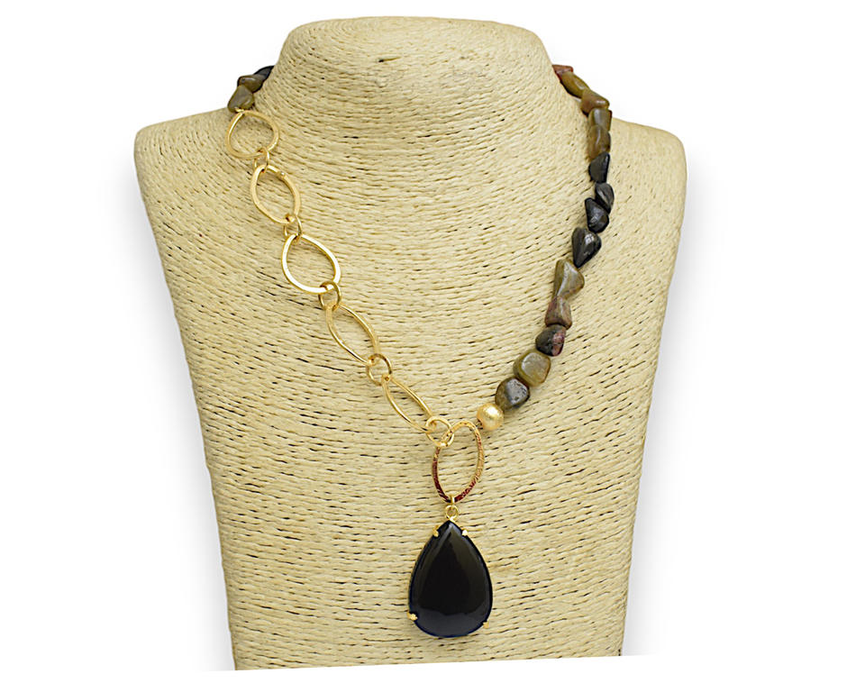 Nombre del producto:Turmalina natural y negro Onyx colgante collar de piedras preciosas