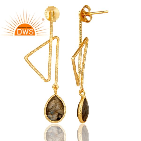 Pendientes de Plata Chapados en Oro Hechos a Mano con Piedra Preciosa de Labradorita, Joyería de Diseño