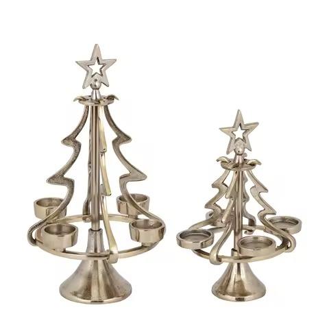 Portavelas en forma de árbol dorado hecho a mano con luces de cadena para decoración navideña del hogar y de la habitación del hotel