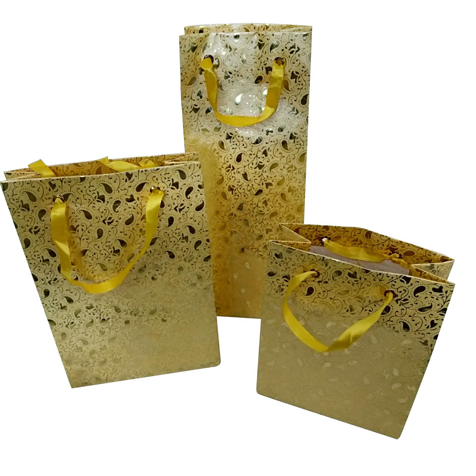 Handmade Golden Craft Paper Carry Bags for Shopping and Gifting Customized Paper Bag 14"x11"x4 Size 200 GSM Carry Paper Bags