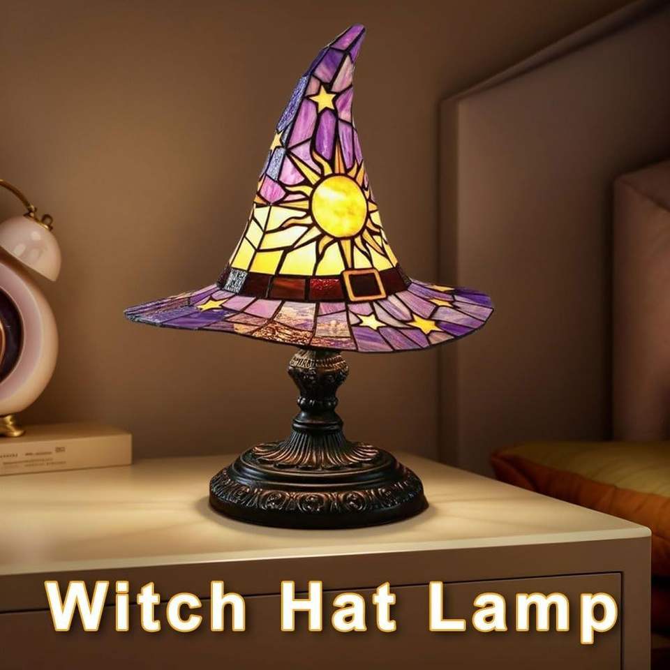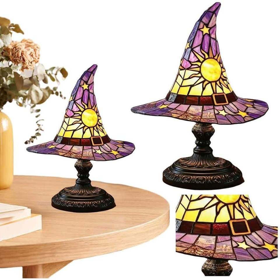 Lámpara de Vidrio con Luz LED de Noche, Diseño de Sombrero de Bruja Gótico Hecho a Mano, Decoración Espeluznante de Halloween para Interiores y Exteriores