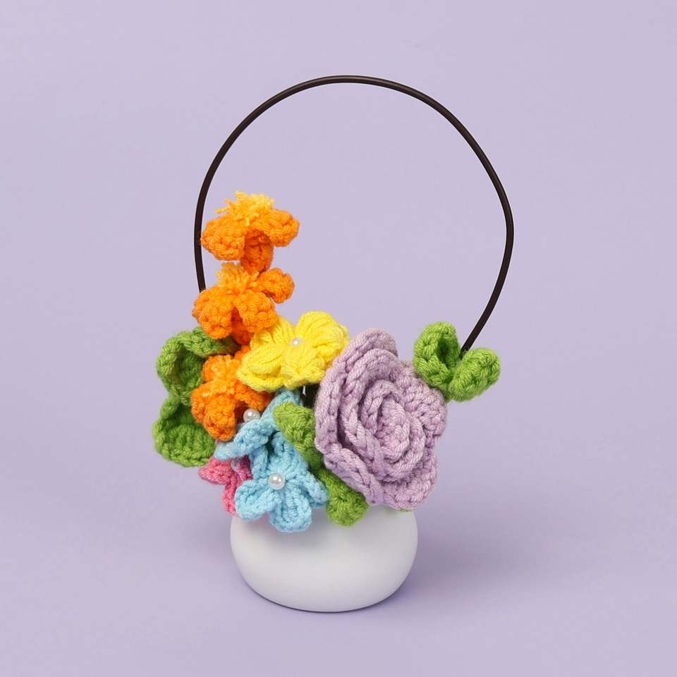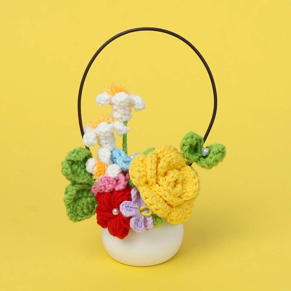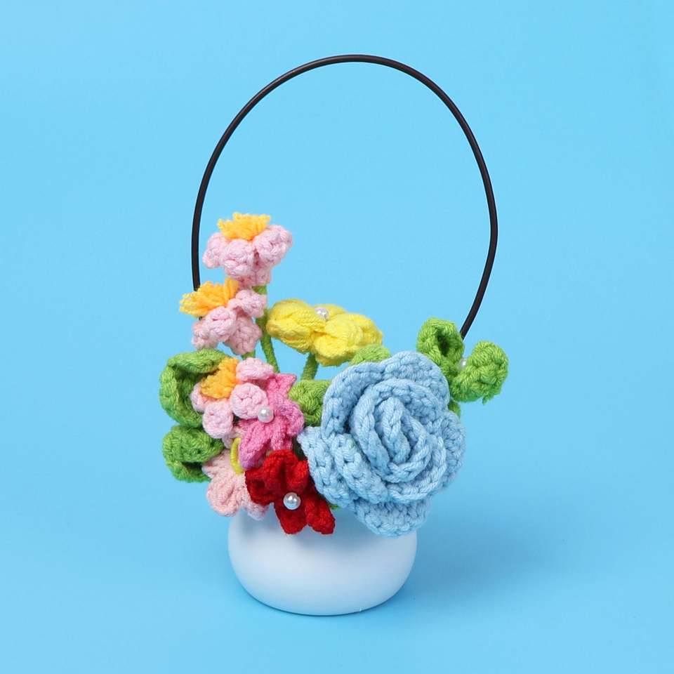 Cesta de Flores de Rosa Tejida a Crochet con Degradado, Hecha a Mano, para Plantas en Maceta, Regalos para Navidad, Halloween, Graduación, Día de la Madre