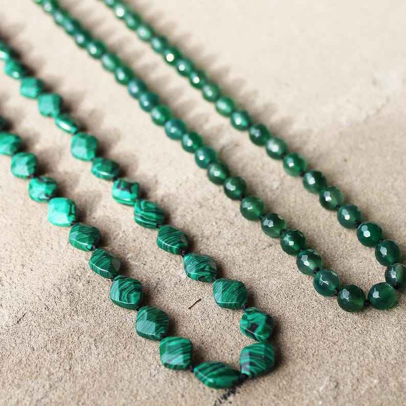 Collar de Cuentas Verdes Hecho a Mano, Collar Largo con Piedras Preciosas Naturales Facetadas de Ágata, Malaquita, Concha y Howlita