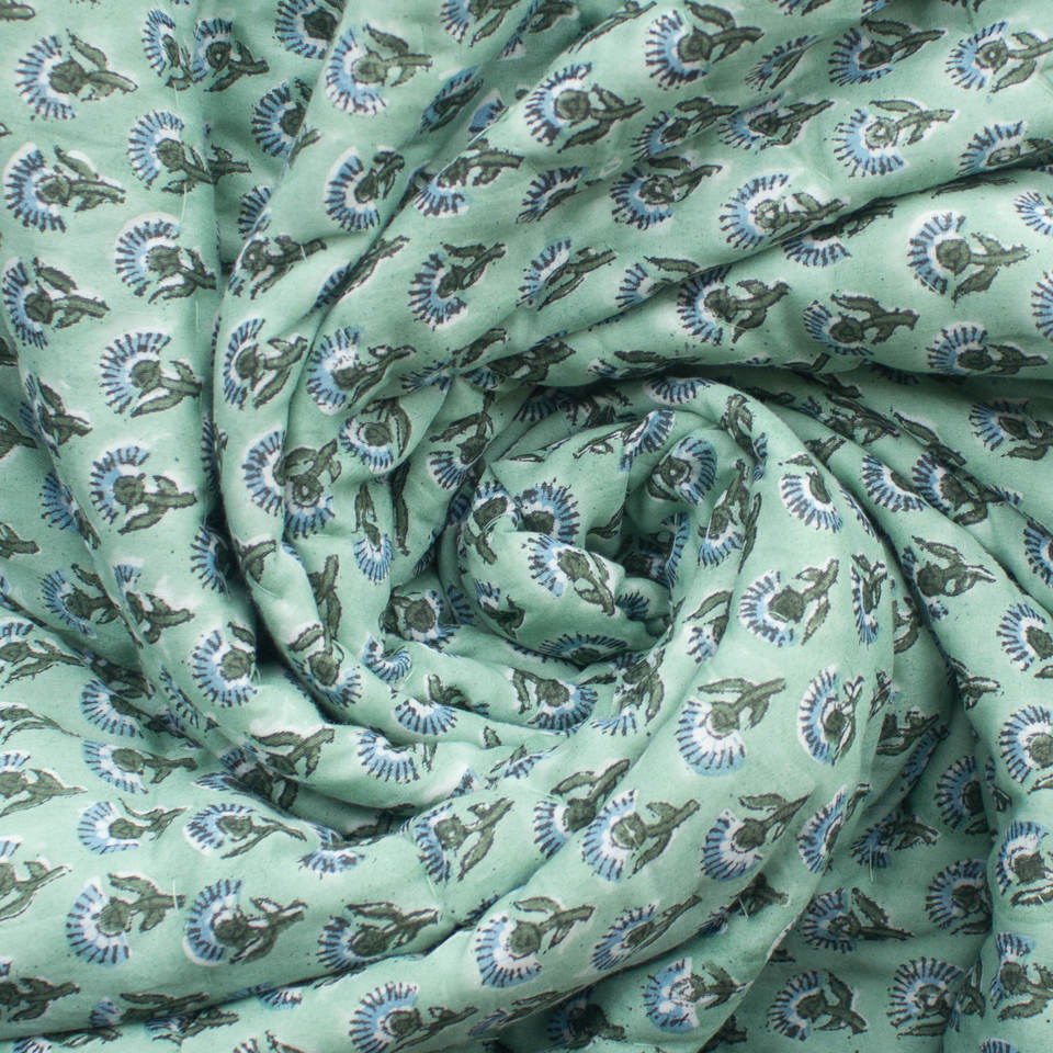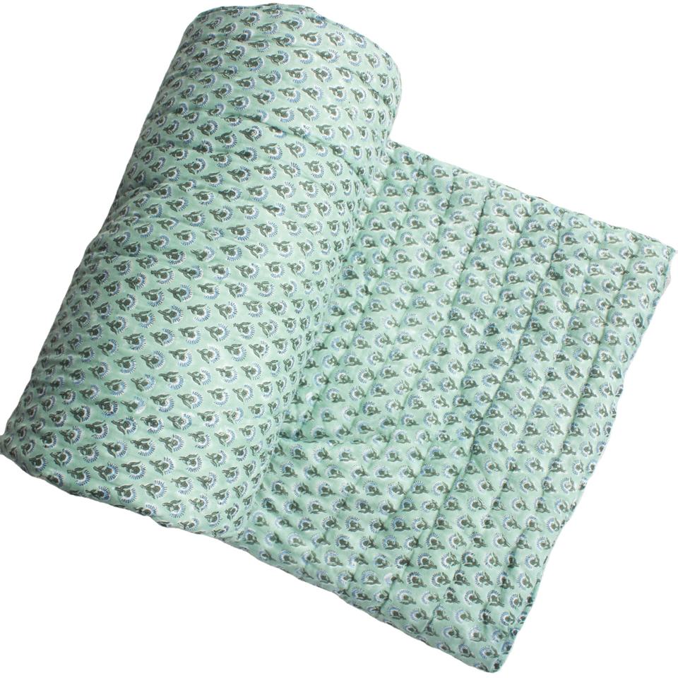 Edredón verde hecho a mano con estampado de Jaipuri, colcha de gasa de algodón Reversible, hecha a mano, rayasthani, edredón tradicional