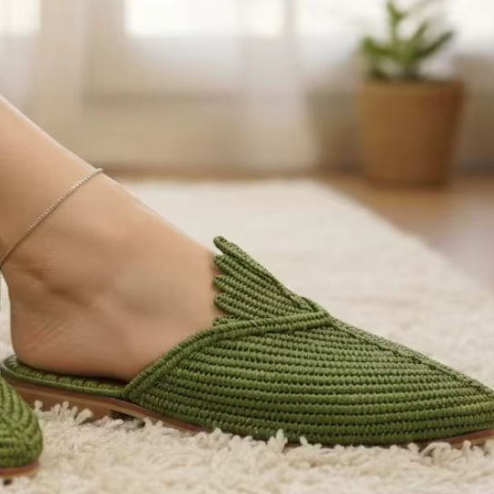 Sandalias de Rafia Verde Hechas a Mano, Sandalias Marroquíes de Verano