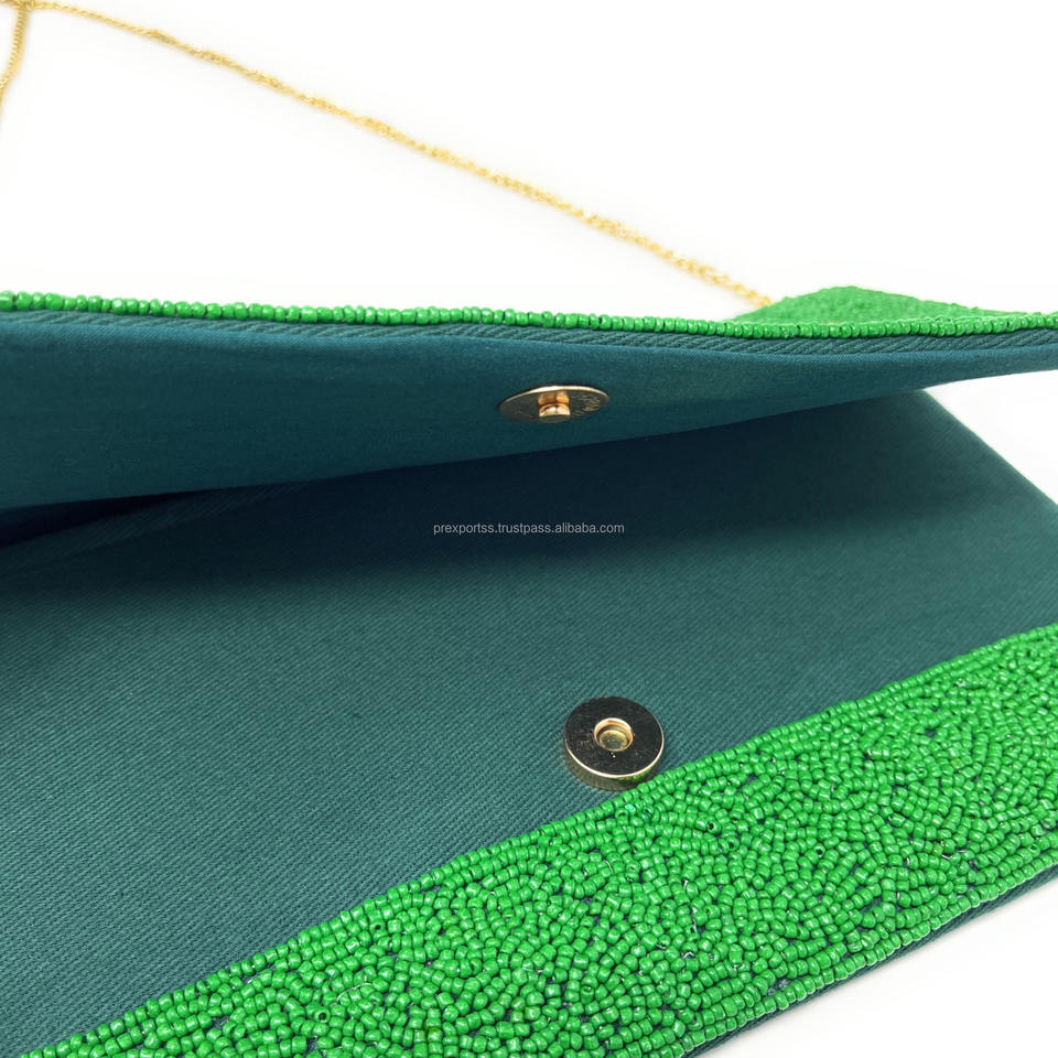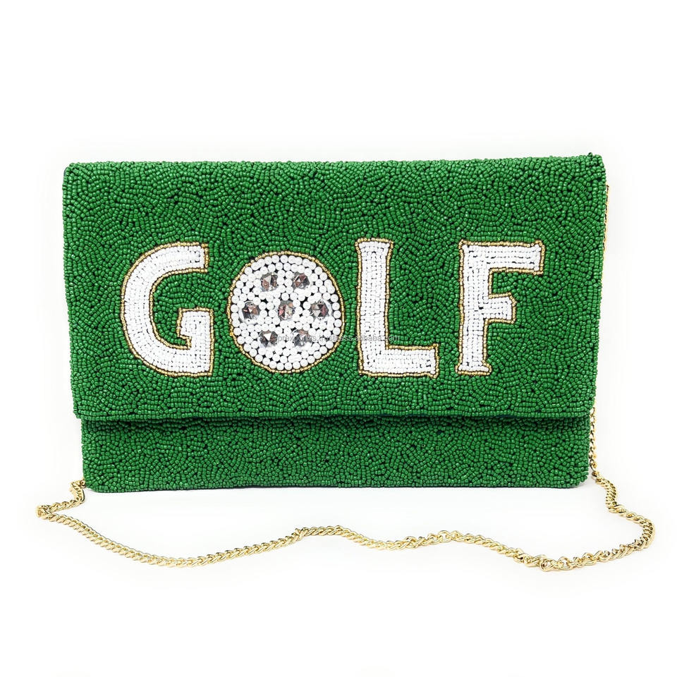 Bolso de mano de noche con tema de Golf, bolso de mano plegable bordado con cuentas de semillas verdes hechas a mano con cierre magnético para mujer, bolsos informales