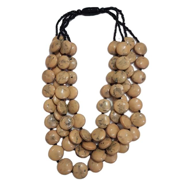 Collar de cuentas gris naranja de 3 líneas hecho a mano con virutas de resina, Cuentas planas de resina para fiesta, regalo, estilo budista inspirado