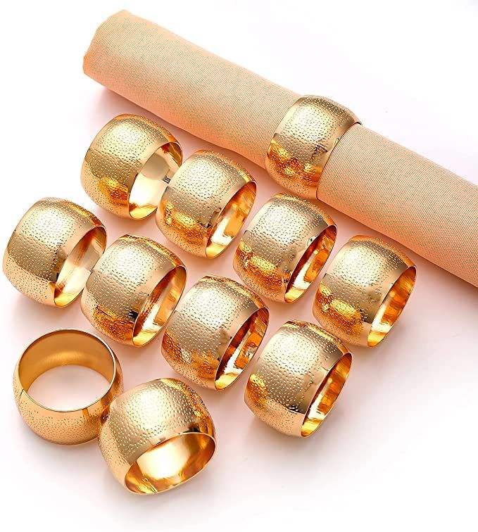 Anillos de Servilleta de Metal Martillado Hechos a Mano, Decoración Rústica para Mesa de Estilo Campestre para Bodas, Eventos, Fiestas, Banquetes y Restaurantes