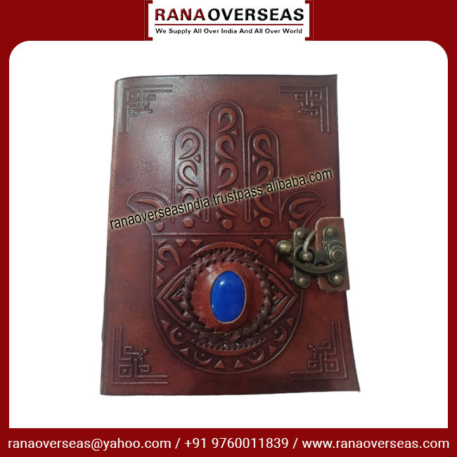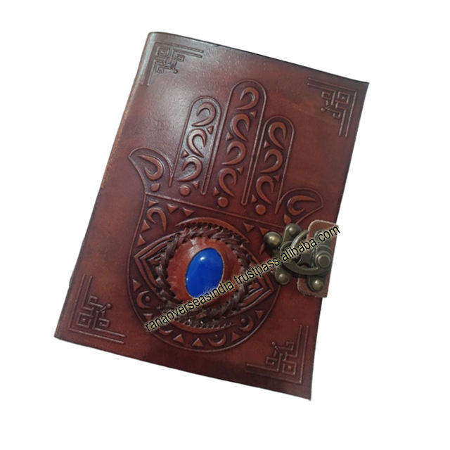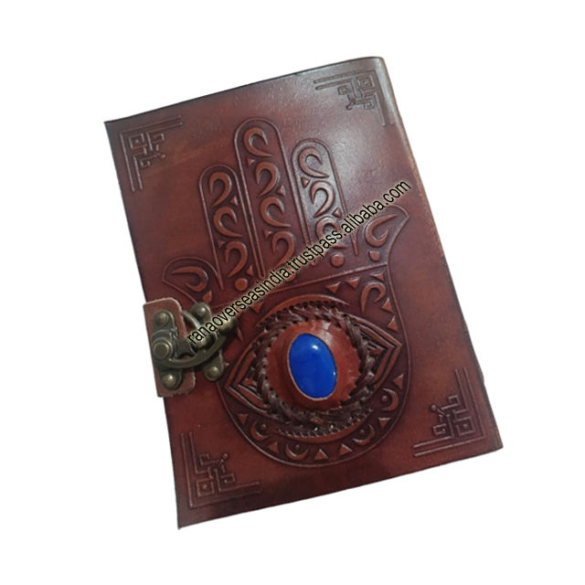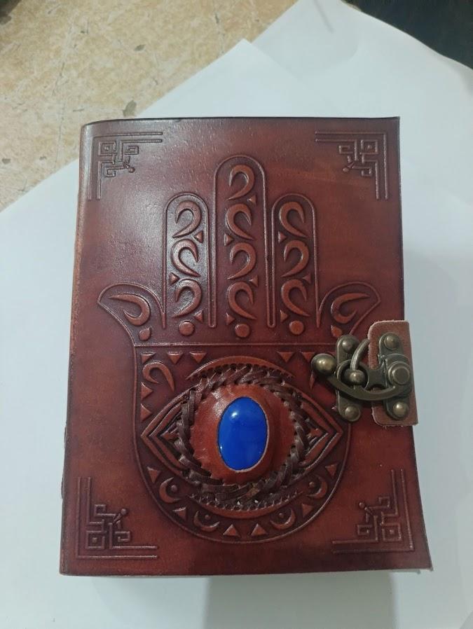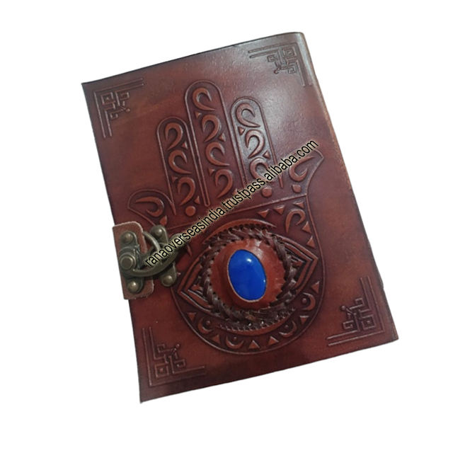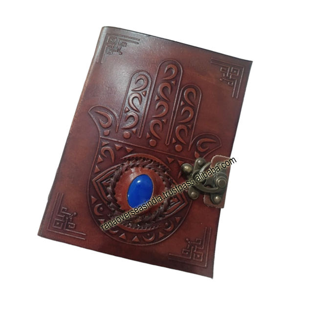 Cuaderno de escritura Hamsa Hnad hecho a mano con piedra azul Bloc de notas encuadernado de alta calidad El mejor regalo para hombres y mujeres