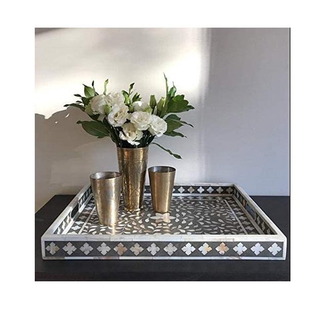 Bandeja de Servir Clásica Hecha a Mano con Madreperla, Duradera, Ecológica, para Cocina, Hogar, Hotel, Vajilla para Bodas y Fiestas
