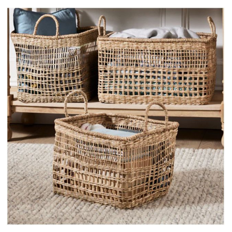 Cestas de almacenamiento de ratán tejidas a mano hechas a mano Contenedor de mimbre Sostenible y resistente Hecho en Vietnam Servicio personalizado