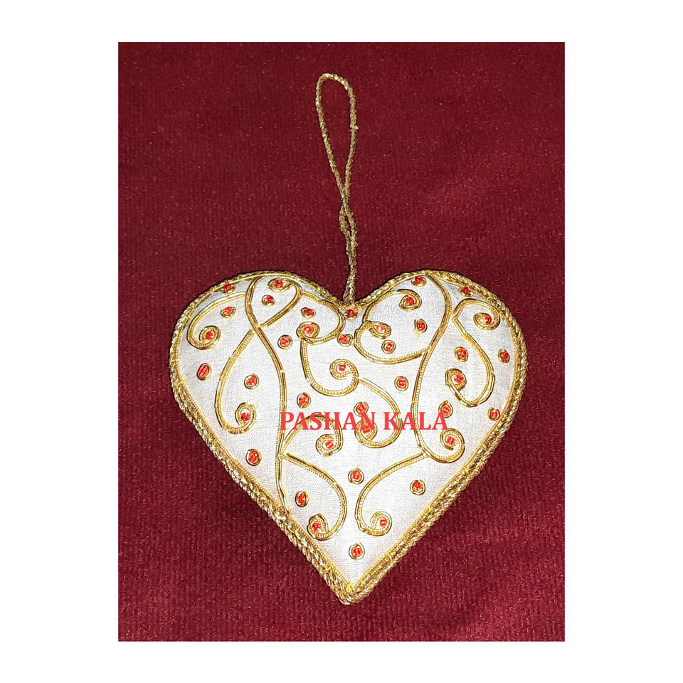 Hecho a mano hermoso corazón forma bordado trabajo Zari Navidad colgante árbol adornos para Navidad y decoración del hogar propósito