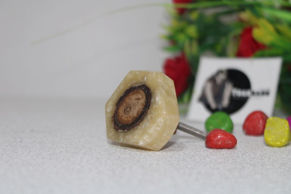 Perilla de gabinete de resina marrón Lite de madera con forma hexagonal hecha a mano, último diseño para sala de estar, salón, muebles escolares, Tradnary Sambhal