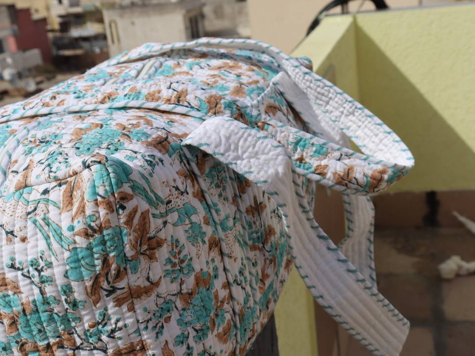 Bolsa de lona acolchada de algodón grande hecha a mano de alta calidad para mujer, equipaje de hombro de viaje con estampado de bloques, regalo de Navidad
