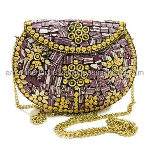 Bolso de mano hecho a mano de alta calidad con cadena de hombro artesanías de lujo para mujeres novias bolsos de noche precio económico