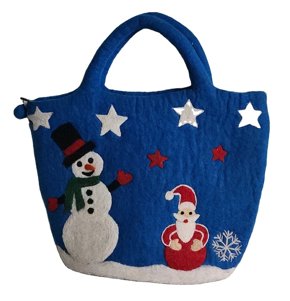 Bolso de mano de playa para mujer de alta calidad Diseño único de muñeco de nieve de Santa Cubo de tela de algodón con cremallera con dos asas Hecho a mano en Nepal