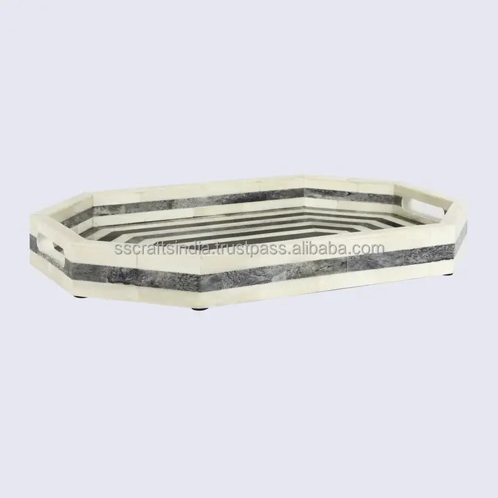 Bandeja de servicio con incrustaciones de hueso de acento hecho a mano para mesas y espacios de vida para suministro mundial de exportador indio