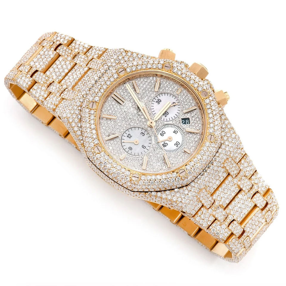 Reloj de Acero Inoxidable con Incrustaciones de Moissanita Hecho a Mano, Joyería de Moda Hip Hop Personalizada, Movimiento de Cuarzo ETA, Esfera de Cristal de Edición Limitada