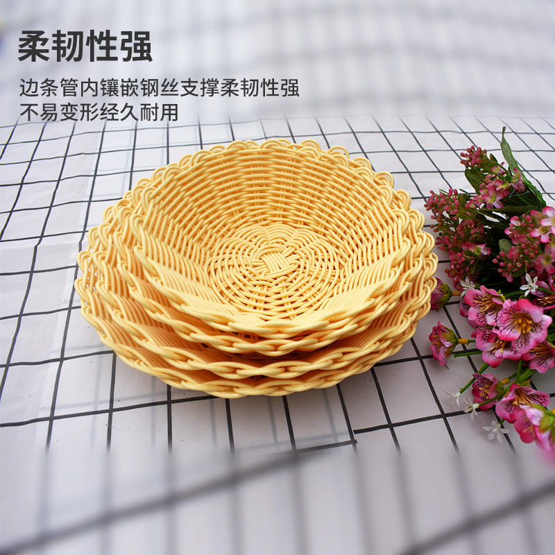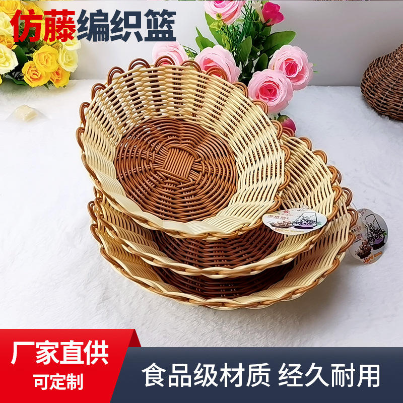 Cesta tejida de imitación de ratán hecha a mano, cesta redonda de plástico para almacenamiento de frutas, verduras, dulces, aperitivos, uso doméstico