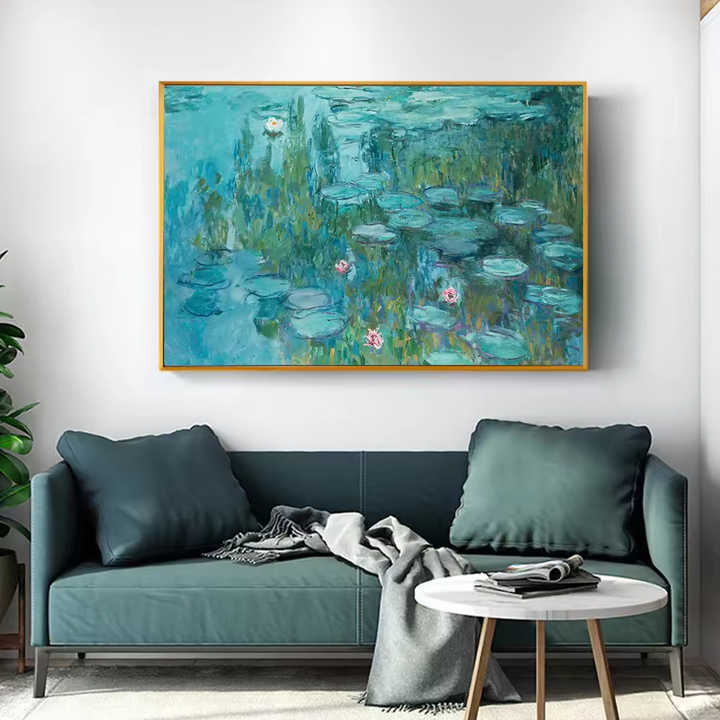 Reproducción de Arte Famoso de Monet, Pintura al Óleo de Flor de Loto Blanco, Impresionista, Hecha a Mano