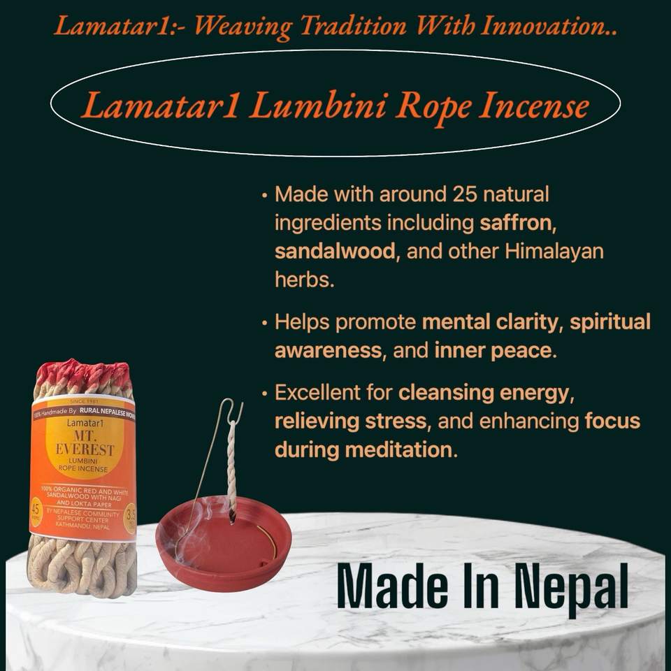 Hecho a mano en Nepal Lamatar1 Lumbini cuerda incienso fragancia Natural Yoga meditación compañero quema suavemente con una mecha Natural