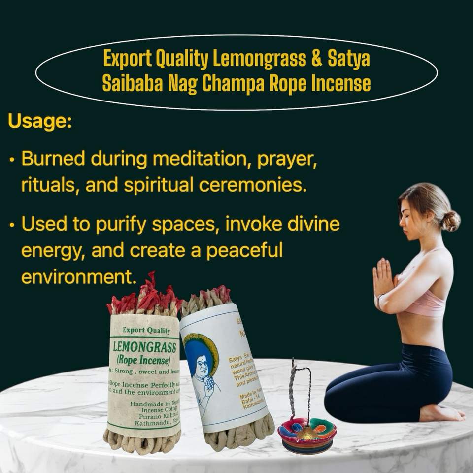 Product name:Natural Lemongrass & Sai Baba Nag Champa Rope Incense