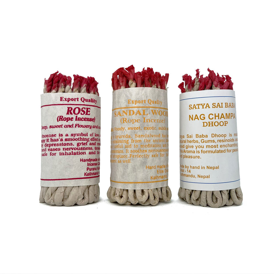 Nombre del producto:Tibetano Rosa sándalo y Sai Baba Nag Champa incienso cuerda