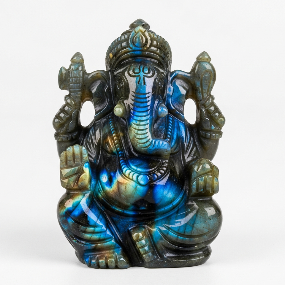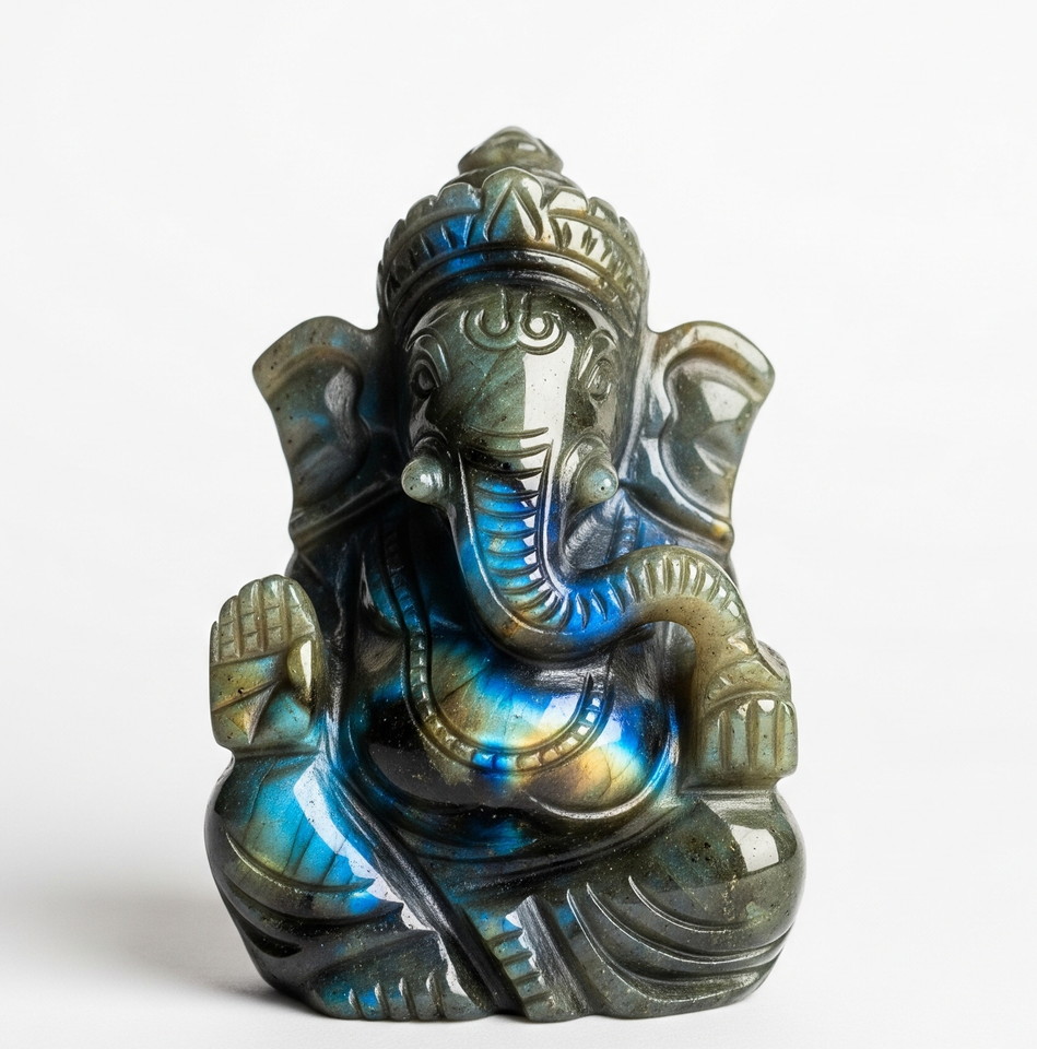 Estatua de Lord Ganesha hecha a mano, labradorita natural tallada, piedra preciosa, artesanía de grabado religioso, piedra semipreciosa India