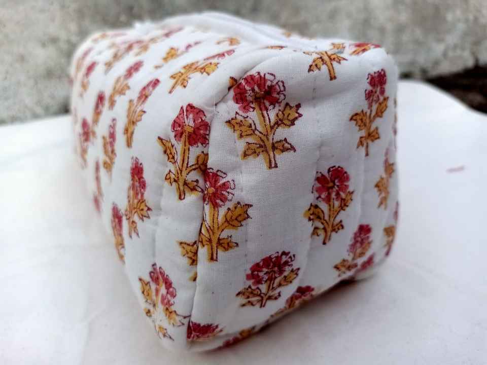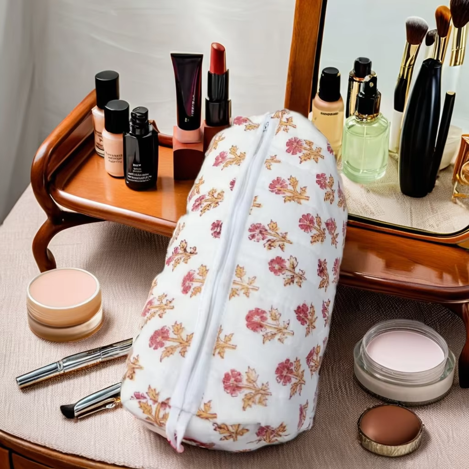 Bolsa de Maquillaje Plegable con Cremallera Resistente al Agua, Hecha a Mano en India, de Algodón Puro Ecológico, Estilo Bohemio con Lazo, Linda
