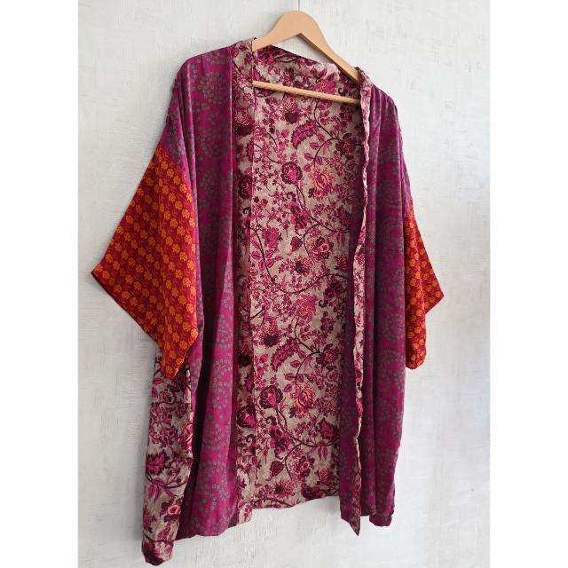 Kimono Corto de Seda India Hecho a Mano, Transpirable, Talla Grande, Hasta la Rodilla, Estilo Boho, para Mujer, Ropa de Estar por Casa y de Dormir