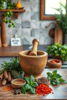 Argamasa y morteroTipo de herramienta para hierbas y especias