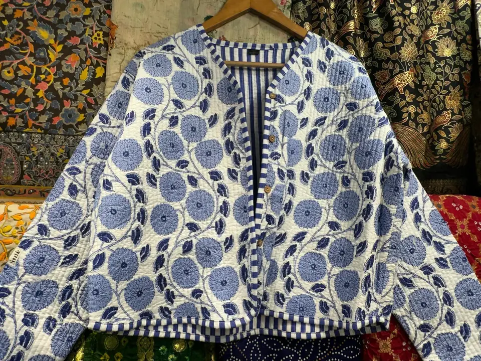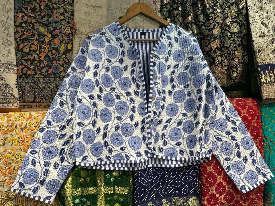 Chaqueta de invierno acolchada de algodón estampada en Bloque para mujer Vintage India hecha a mano diseño Floral único acabado de lino transpirable